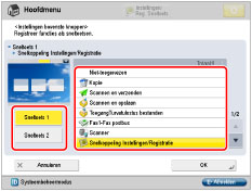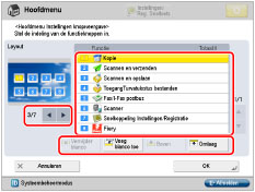 Als het aantal functieknoppen hoger is dan het aantal knoppen van de lay-out die is aangegeven voor <Instellingen Knopweergave hoofdmenu>, worden de extra knoppen weergegeven na pagina 2 van het scherm Hoofdmenu. Er kunnen maximaal 16 knoppen worden weergegeven op het scherm Hoofdmenu.