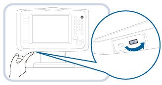 Voor een lichter touch panel display draait u de knop naar rechts. Voor een donkerder display draait u de knop naar links.