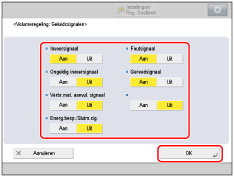 op het bedieningspaneel om geluidssignalen in te stellen voor de handelingen die worden uitgevoerd of voor de status van het apparaat.|
