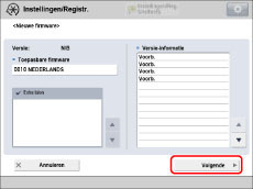 Geschikte firmware: Geeft de nieuwe firmware voor de machine weer.