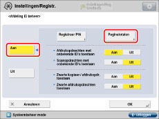 Druk op [Beheerinstellingen] → [Gebruikersbeheer] → [Afdeling-ID beheer].