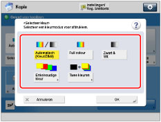 De standaard instelling is 'Automatisch (Kleur/Z-W)' voor alle kopieerfuncties.