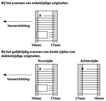 Als u originelen met verschillende formaten scant zonder de Verschillende origineelformaten-modus in te stellen of als u voor het papierformaat een niet-standaard formaat selecteert, zal de machine niet in staat zijn vast te stellen of uw originelen in kleur of zwart/wit zijn.
