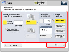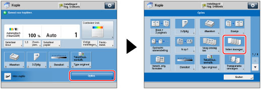 Als u papier dat is bedrukt (bijvoorbeeld met het bedrijfslogo) als invoegblad gebruikt, dient u [Blanco laten] te selecteren. Anders zal de machine op het voorbedrukte papier kopiëren.