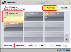 Selecteer [Persoonlijk] → selecteer de persoonlijke knop die u wilt wijzigen → druk op [Hernoemen].