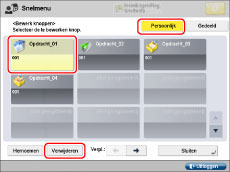 Selecteer [Persoonlijk] → selecteer de persoonlijke knop die u wilt verwijderen → druk op [Verwijd.].