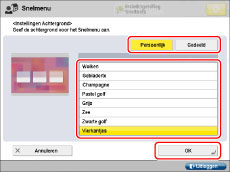 Selecteer de knop waarvoor de achtergrond moet worden ingesteld → selecteer de achtergrondinstellingen → druk op [OK].