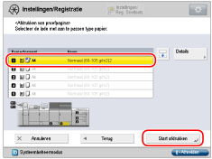 Druk op [Voorkeuren] → [Papierinstellingen] → [Instellingen Beheer papiertype].