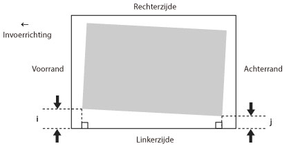 De markering 'i' wordt afgedrukt aan de linkerzijde van de voorrand en 'j' aan de linkerzijde van de achterrand van de invoerrichting.
