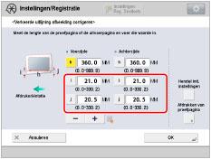 Als de beeldpositie enorm afwijkt, kan de nauwkeurigheid van de correctie worden verbeterd door verschillende proefpagina's af te drukken en een gemiddelde van de gemeten lengte te nemen.