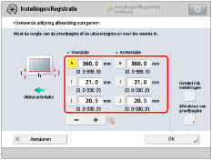 Ga terug naar het scherm <Verkeerde uitlijning afbeelding corrigeren> → voer de gemeten lengte in van [i] en [j] voor de voor- en achterzijde.