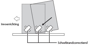 De scheefstandcorrectierol bevindt zich in de invoereenheid van de hoofdeenheid. Deze past de afdrukpositie vna het papier aan door het papier diagonaal tegen de wand in de invoereenheid te drukken. Als de ingestelde scheefstandcorrectie niet juist is, wordt de afbeelding gekanteld.