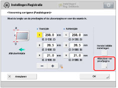 Voer de gemeten lengte in van de linkerzijde van de voorrand van het afdrukgebied naar de rechterzijde van het afdrukgebied.