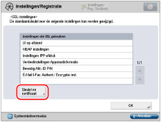 U kunt het gebruikte sleutelpaar instellen nadat u de functies waarvoor met SSL versleutelde communicatie wordt gebruikt, hebt gecontroleerd.