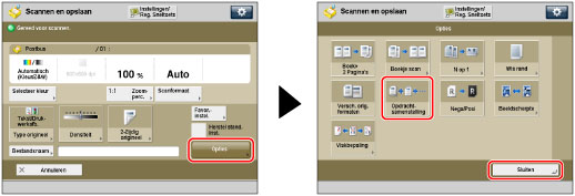 Als u enkelzijdige en dubbelzijdige originelen wilt scannen en ze als dubbelzijdige originelen wilt opslaan, verdeel de originelen dan in enkelzijdige en dubbelzijdige batches. Als de eerste batch, bijvoorbeeld, bestaat uit dubbelzijdige originelen, stelt u [2-Zijdig origineel] in. Daarna moet u [2-Zijdig origineel] handmatig instellen of annuleren voor elke batch originelen die u scant.