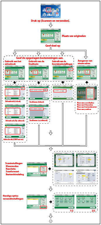 Druk op deze toets om de andere beschikbare modi te selecteren en te gebruiken voor scannen en verzenden. Met deze toets kunt u handige verzendfuncties instellen, zoals het gelijktijdig verzenden van originelen met verschillende formaten of het verzenden van 2-zijdige originelen.