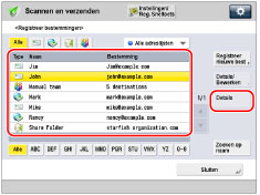 → [Scannen en verzenden] → [Adresboek].
