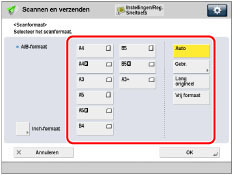 → [Scannen en verzenden] → druk op de knop om het scanformaat te selecteren.