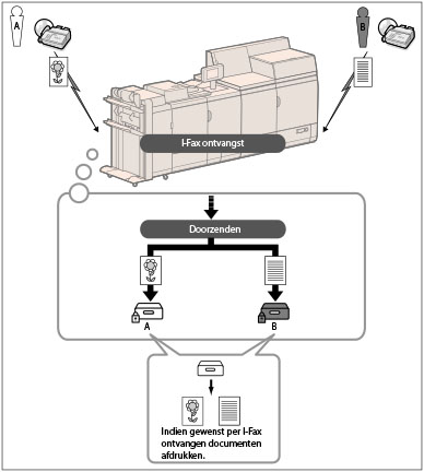 Indien afbeeldingsbestanden die bij ontvangen I-faxdocumenten zijn gevoegd niet compatibel zijn met deze machine, zal de machine deze bestanden niet verwerken (afdrukken, doorzenden of opslaan). In plaats daarvan worden de bestanden verwijderd. In dit geval worden de namen van de gewiste bestanden en de melding <Geen enkel programma kan het bestand verwerken.> afgedrukt met de tekst van de ontvangen I-fax.