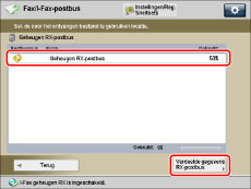 Druk op deze toets om alle bestanden in de postbus te selecteren. Als u een bestand selecteert, verandert deze toets in [Wis selectie].