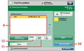 Druk op [Naar Adr.b. op afstand] om bestemmingen op te geven die in de sneltoetsen van een servermachine zijn geregistreerd, door die te gebruiken vanaf een clientmachine op het netwerk. Zie "Bestemmingen opgeven via de snelkiestoetsen van een servermachine". voor meer informatie