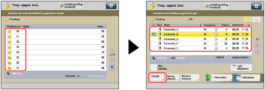 Selecteer het gewenste postvak → selecteer het gewenste bestand → druk op [Details].