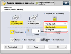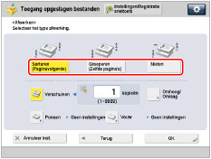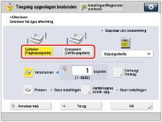 U kunt de [Aantal kopies schak. opg.] alleen instellen als u de [Stapelgedeelte] selecteert voor de <Stapelaar uitv. bestemming>.