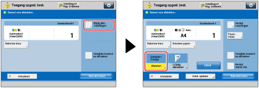 Als u de modus Nieten, Ponsgaten of Z-vouw instelt, zal de zijde waarop is afgedrukt altijd omlaag worden uitgevoerd.