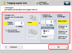 Als u papier dat is bedrukt (bijvoorbeeld met het bedrijfslogo) als invoegblad gebruikt, dient u [Blanco laten] te selecteren. Anders zal de machine op het voorbedrukte papier afdrukken.