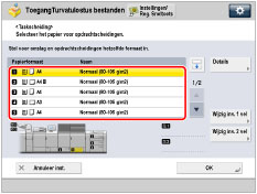 Als u op [Details] drukt, wordt gedetailleerde informatie over het geselecteerde papier weergegeven.