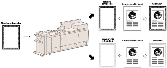 De densiteit van CMYK-afbeeldingen voor Superponeer afbeelding wordt wellicht iets lichter bij afdrukken met de modus Superponeer afbeelding.