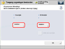 Om de modus Superponeer afbeelding te kunnen gebruiken, moet de afbeelding al eerder in het geheugen van de machine zijn geregistreerd. (Raadpleeg "Instellen van het opvangblad van de stapelaar".)