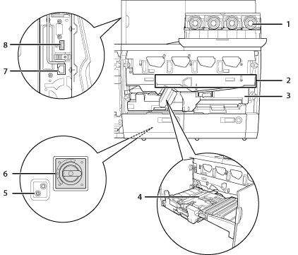 Sijaitsee painoyksikön vasemmassa yläosassa. Tätä liitäntää ei normaalisti käytetä, sillä se on huoltoedustajia varten.