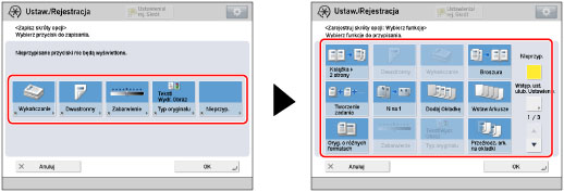Naciśnij na [Ustawienia Funkcji] → [Kopia] → [Zapisz skróty opcji].