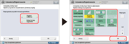 Nacisnąć na klawisz skrótu → wybrać ustawienia, które mają zostać zarejestrowane pod klawiszem → i nacisnąć na [OK].