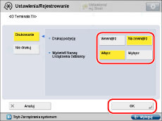 Określić poszczególne ustawienie→ i nacisnąć na [OK].