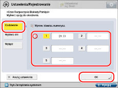 Jeżeli wybierzesz [Codziennie], wybierz liczbę ([1] do [5]) → wprowadź czas rozpoczęcia za pomocą