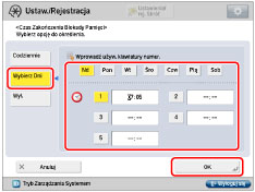 Jeżeli wybierzesz [Wybierz Dni], wybierz dzień tygodnia ([Nd] do [Sob]) → wybierz liczbę ([1] do [5]).