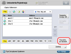 Jeżeli z listy rozwijalnej książki adresowej zostanie wybrany przycisk [Wsz. listy adr.] zostaną wyświetleni również odbiorcy zapisani pod klawiszami wybierania jednoprzyciskowego. Jednakże, nie można usunąć odbiorców zapisanych pod klawiszami wybierania jednoprzyciskowego. Aby uzyskać więcej informacji na temat usuwania klawiszy jednoprzyciskowych, patrz