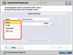 Organizacja/jednostka organizacyjna mogą być wykorzystywane jako kategorie przeszukiwania tylko wtedy, gdy stosowne informacje zostały zarejestrowane na serwerze LDAP.