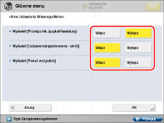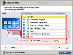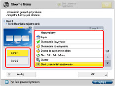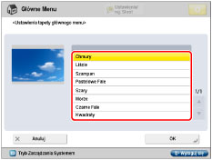 Jeżeli liczba przycisków funkcji przekracza liczbę przycisków na rozkładzie określonym dlaUstawienia Wyświelania Przycisku <Głównego Menu>, przyciski są wyświetlane za 2 stroną Menu głównego. Maksymalnie 16 przycisków może być wyświetlanych na ekranie Menu głównego.