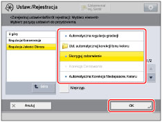 Wybierz ustawienia ekranu Ustawienia/rejestrowanie, które mają zostać zarejestrowane → naciśnij na [OK].