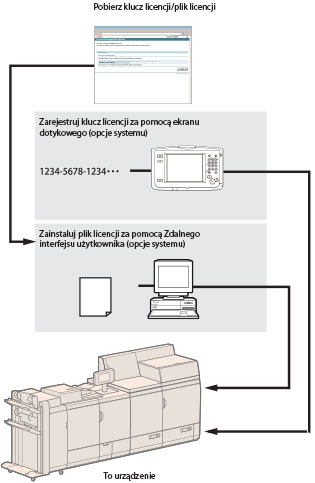 Skorzystaj z pliku licencji/klucza licencji uzyskanego z Systemu zarządzania licencjami, aby zainstalować opcjonalne elementy systemu.