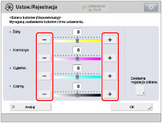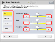 Nacisnąć na [-] lub [+], aby wyregulować natężenie każdego z kolorów.