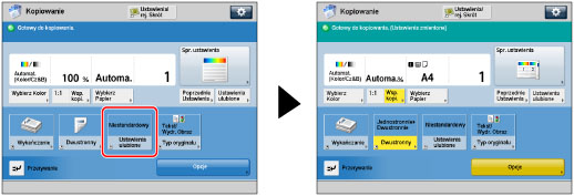 Ustawienia mogą zostać przywołane bez wyświetlania ekranu potwierdzenia z ekranu Podstawowych funkcji kopiowania.