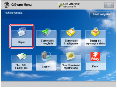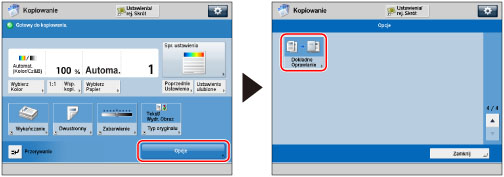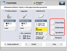 Aby rozpocząć podawanie papieru z Zespół wstawiania dokumentów-N1, wybierz [Podajnik Papieru 1] lub [Podajnik Papieru 2]. Jeżeli papier jest podawany z Zespół wstawiania dokumentów-N1 dla aktualnego zadania, naciśnij na [Zmień podaj- nik1 papier] lub [Zmień podaj- nik 2 papier], aby wybrać papier dla wstawiania arkuszy.