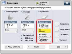 Nie obcinany: Długość docelowego formatu przekracza szerokość układarki (ok. 297 mm) lub głębokość docelowego formatu przekracza wysokość układarki (ok. 221 mm).