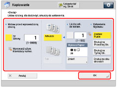 Gdy dodawane są strony rozdziałowe lub papier z zakładkami, to arkusze te wliczane są do całkowitej liczby wykonanych kopii.