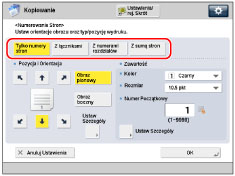 Tryb ten umożliwia drukowanie numerów stron, numerów z łącznikami oraz numerów z oznaczeniami rozdziału itd. na kopiach.