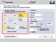 Jeżeli włączysz [Opcja Numerow.], [Cała Powierzchnia] oraz [Numery w 5 Miejscach] są oznaczone na szaro i nie mogą być wybrane. (Patrz „Opcje wykorzystywane do numerowania kompletu kopii.”)